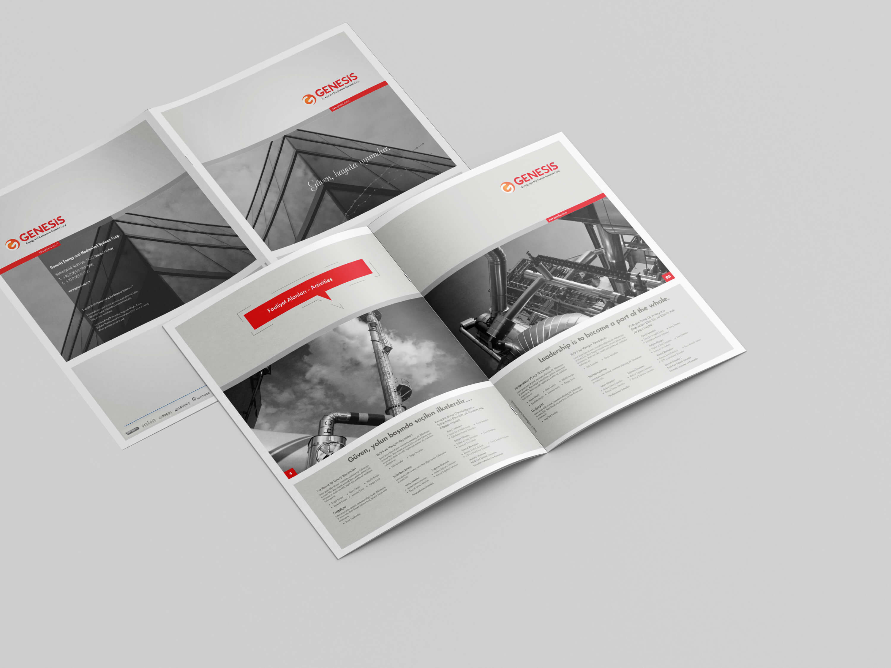 Genesis için hazırladığımız katalog tasarımları, markanın ürün ve hizmetlerini modern bir görsel dil ile öne çıkardı.